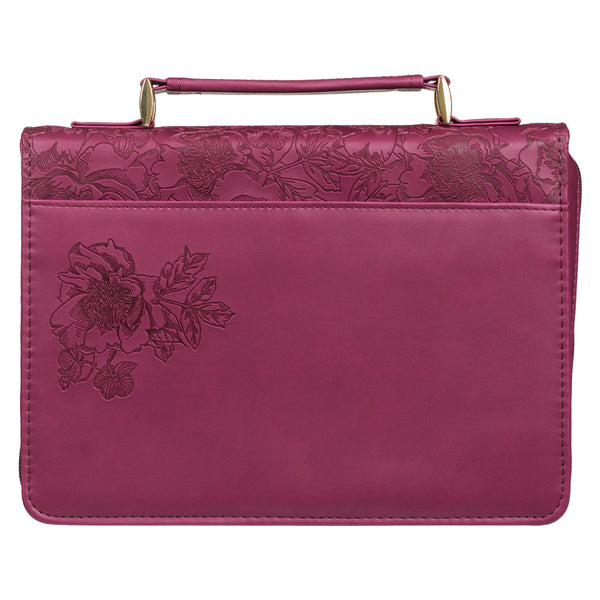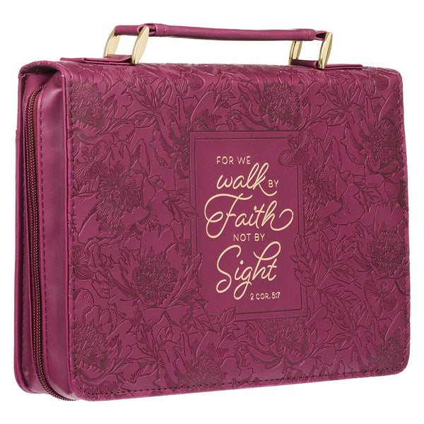 The Walk by Faith Ruby Red Faux Leather Fashion Bible Cover is your cue to take on life with the confidence that comes from knowing you serve an Almighty God, and carrying your Bible in a sturdy Bible case will remind you of this honor every time you unzip it to read from God's Word.